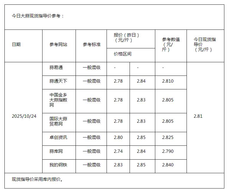 2025年10月24日现货指导价