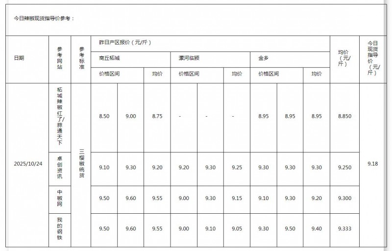 • 2025年10月23日现货指导价