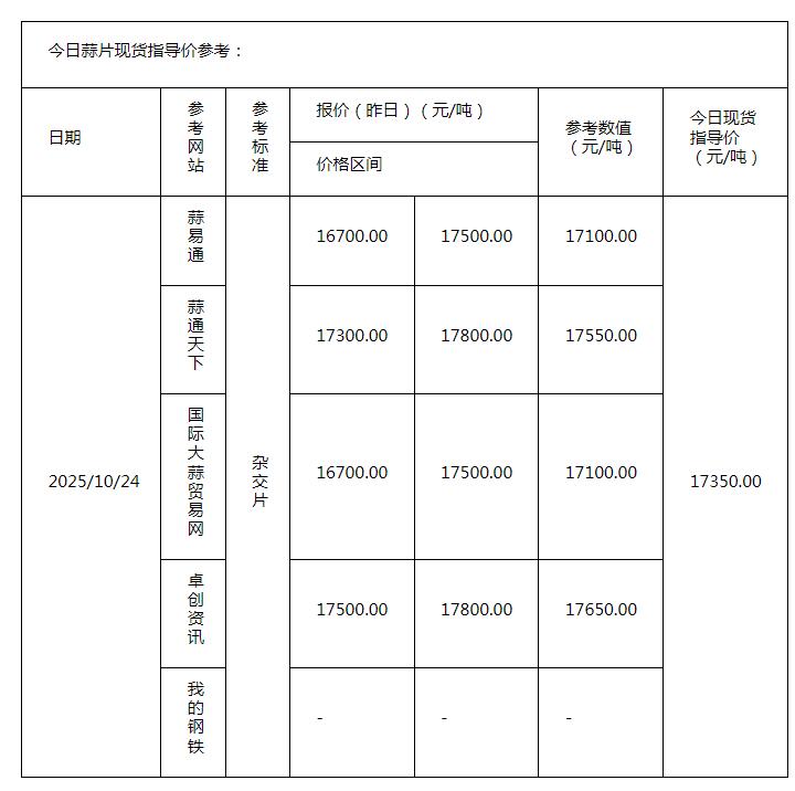 2025年10月17日现货指导价