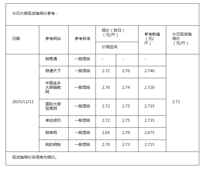 • 2025年12月12日现货指导价