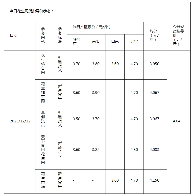 • 2025年12月4日现货指导价