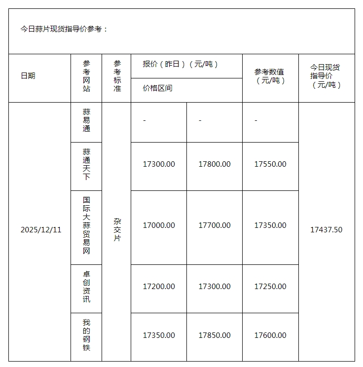 2025年12月11日现货指导价