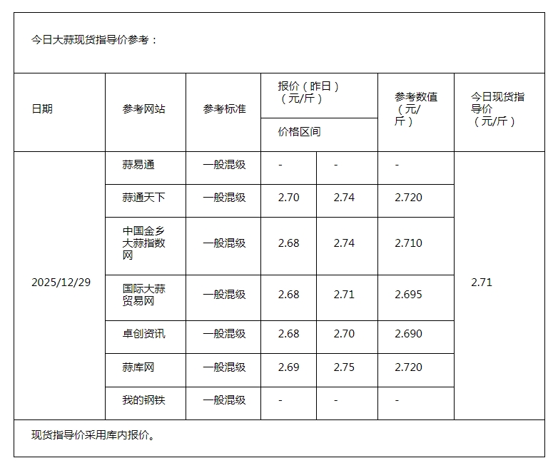 2025年12月29日大蒜、生姜、辣椒行情综述