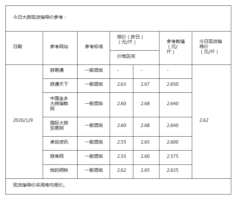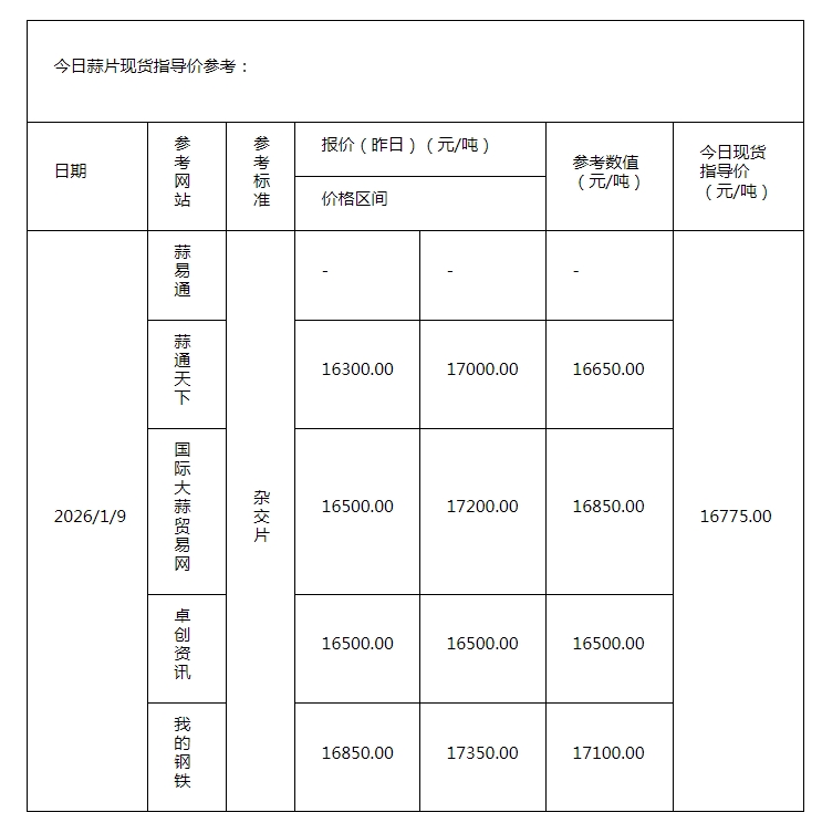 2026年1月9日现货指导价