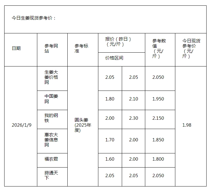 2026年1月9日大蒜、生姜、辣椒行情综述