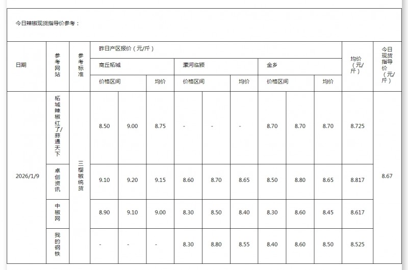 • 2026年1月8日现货指导价