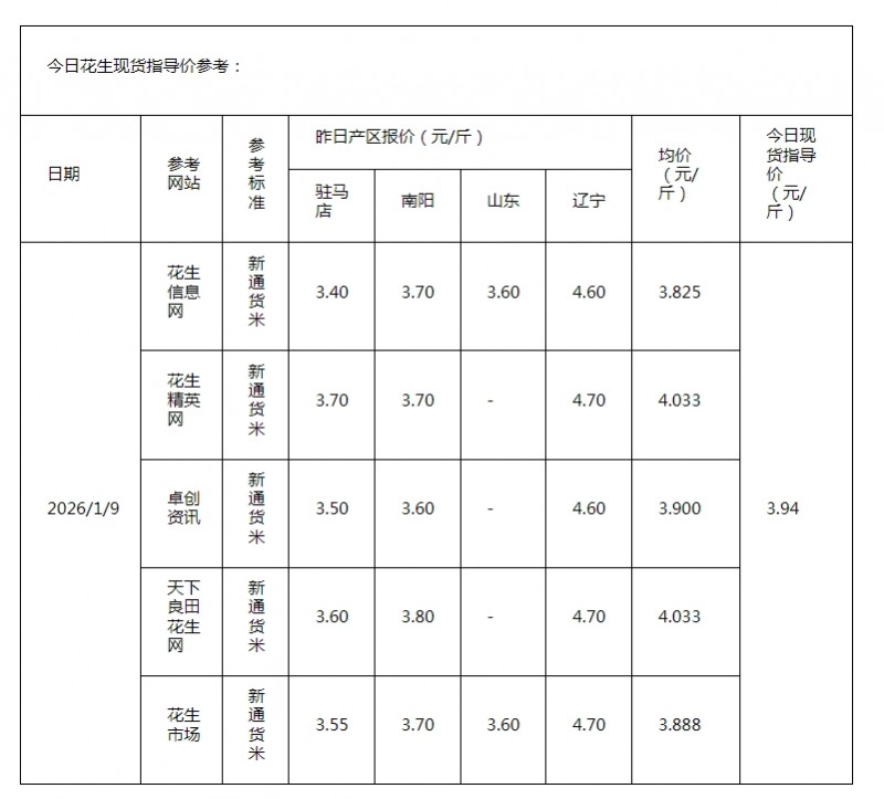 • 2026年1月5日现货指导价
