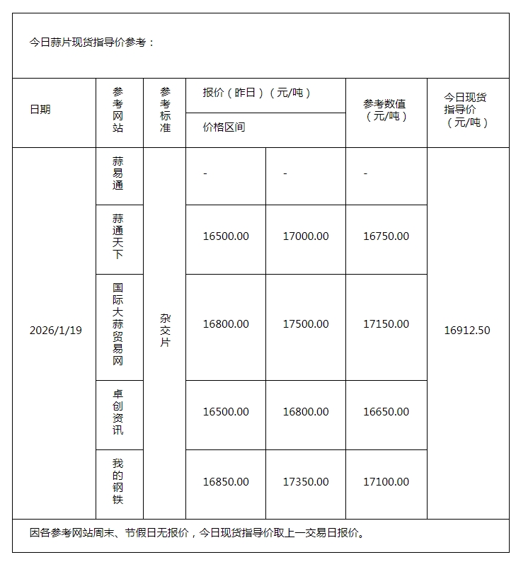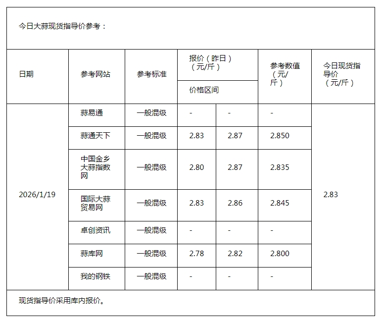2026年1月19日大蒜、生姜、辣椒行情综述