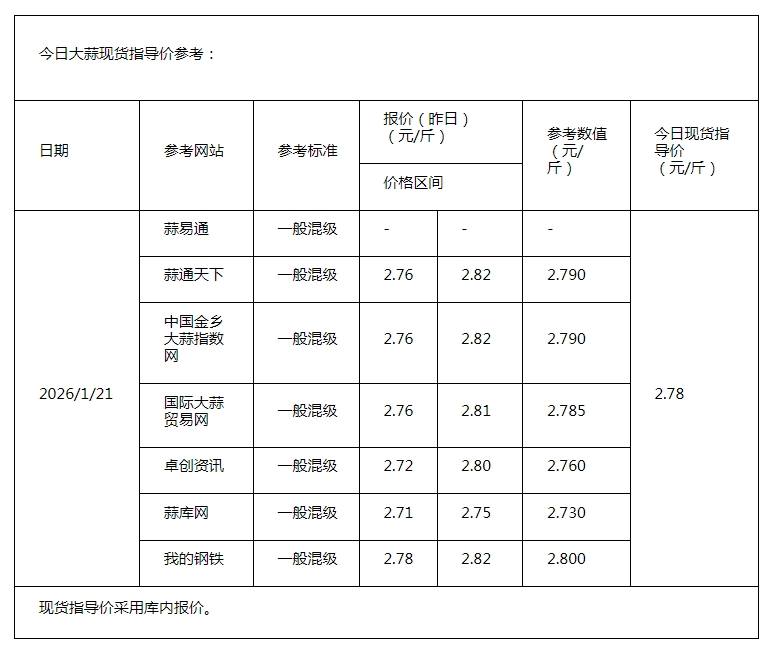 2026年1月21日大蒜、生姜、辣椒行情综述