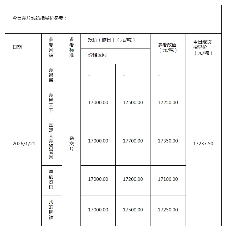 2026年1月21日现货指导价