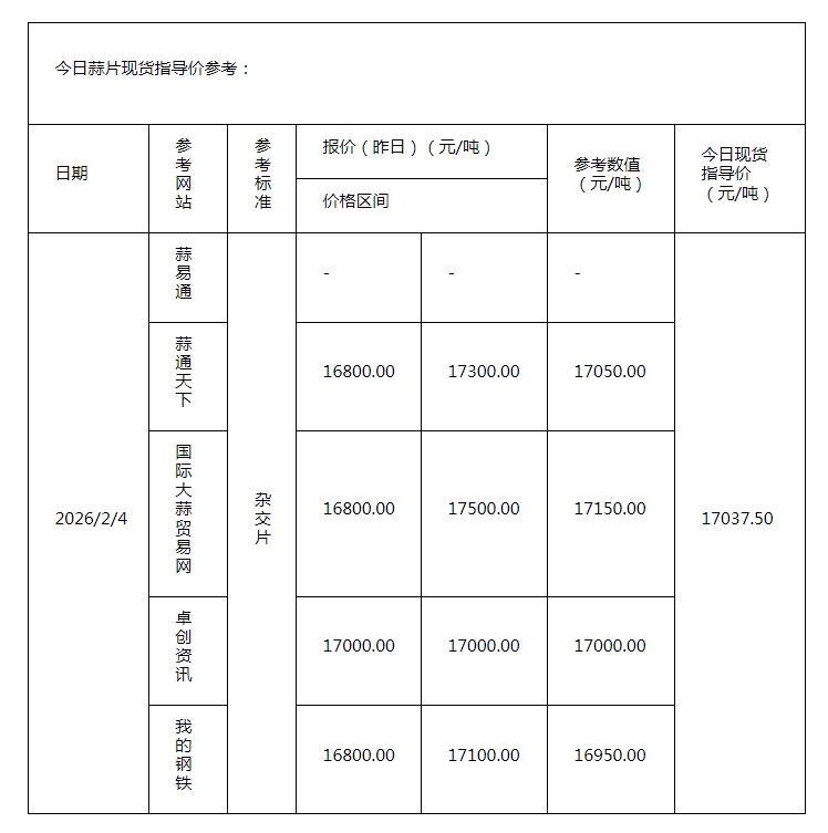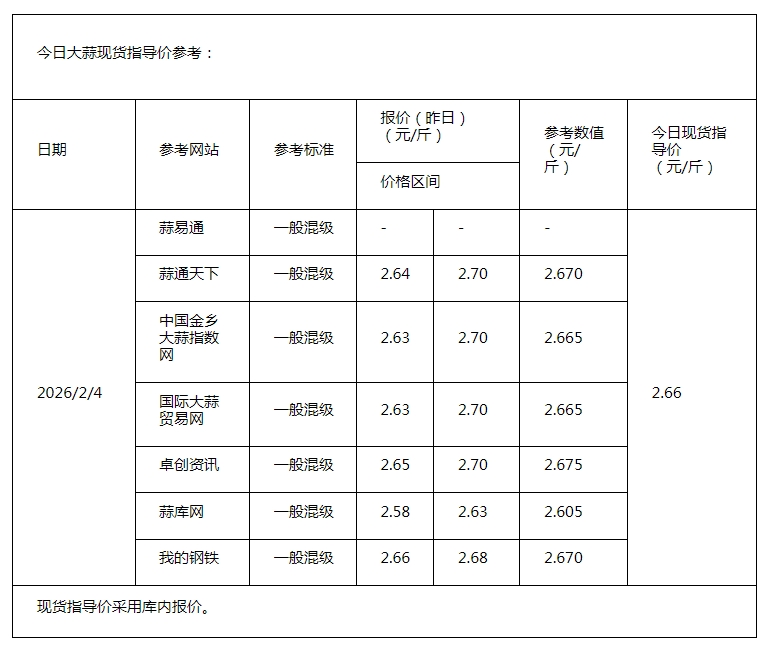 2026年2月4日大蒜、生姜、辣椒行情综述