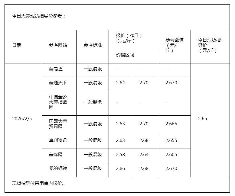 2026年2月5日现货指导价