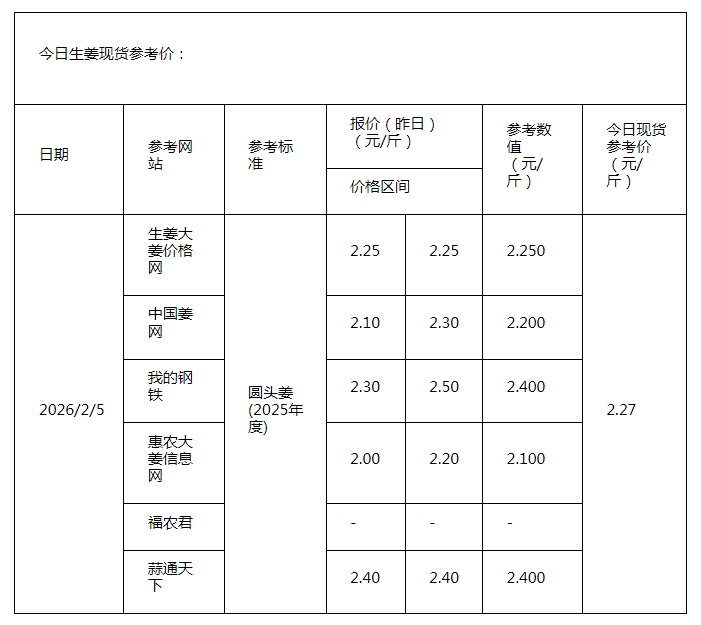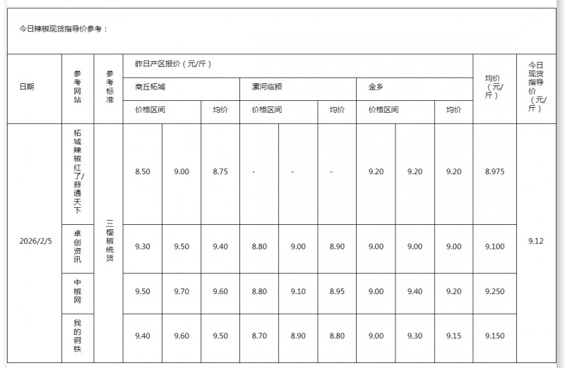 • 2026年2月3日现货指导价