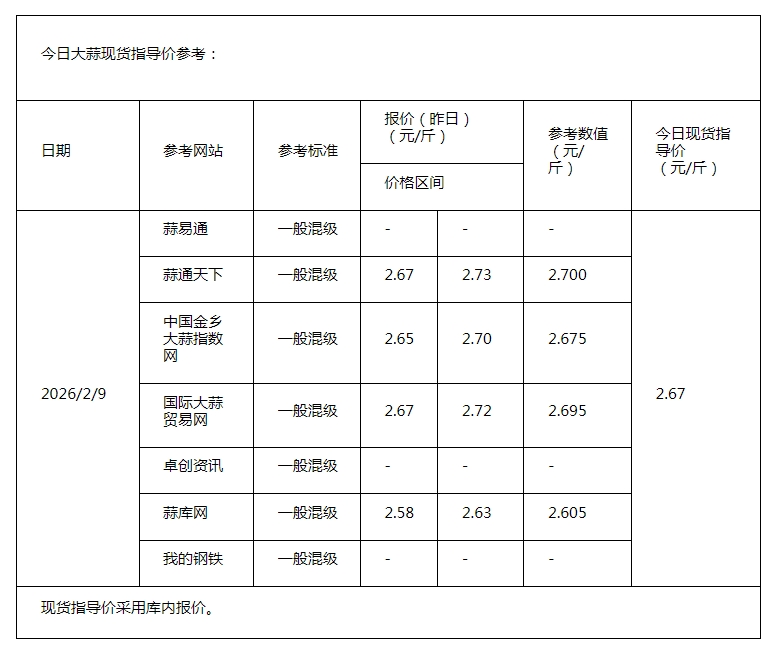 2026年2月9日大蒜、生姜、辣椒行情综述