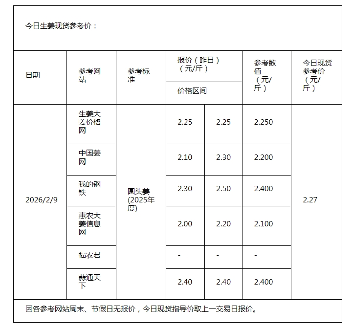 • 2026年2月3日现货指导价
