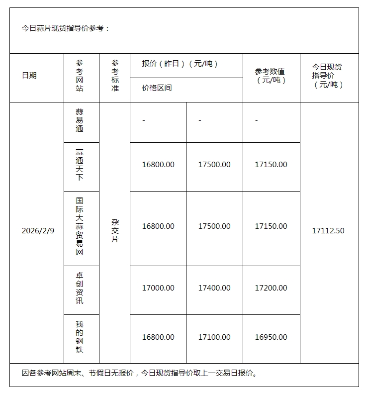 • 2026年2月10日现货指导价