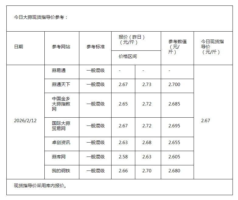 2026年2月12日大蒜、生姜、辣椒行情综述