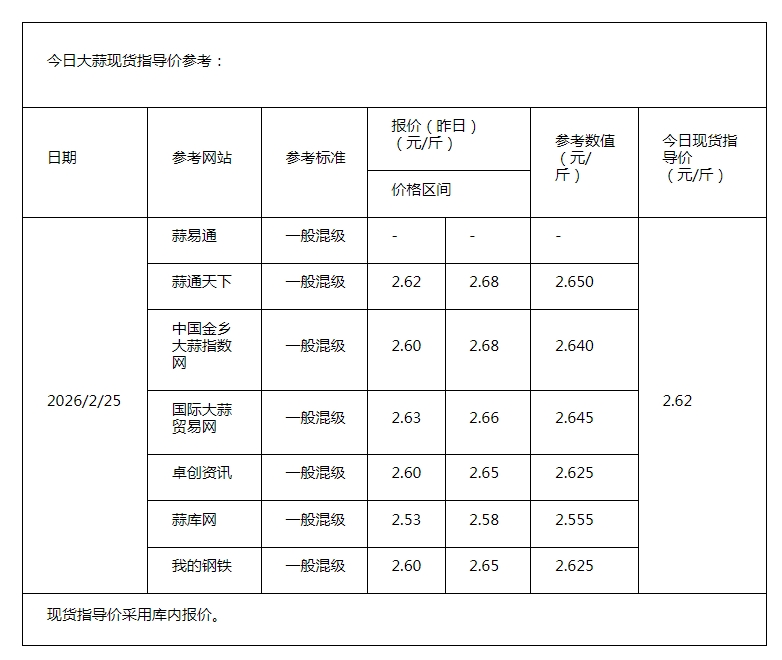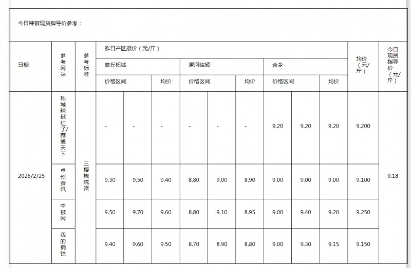 2026年2月25日现货指导价