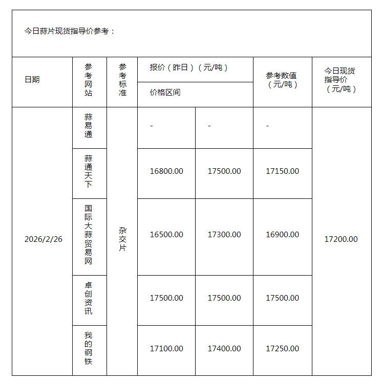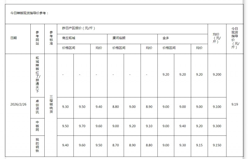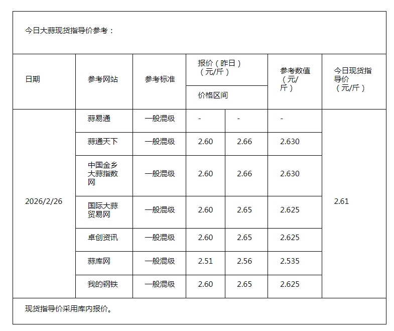 2026年2月26日大蒜、生姜、辣椒行情综述