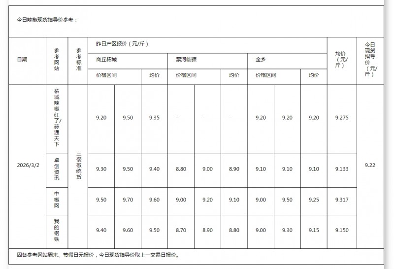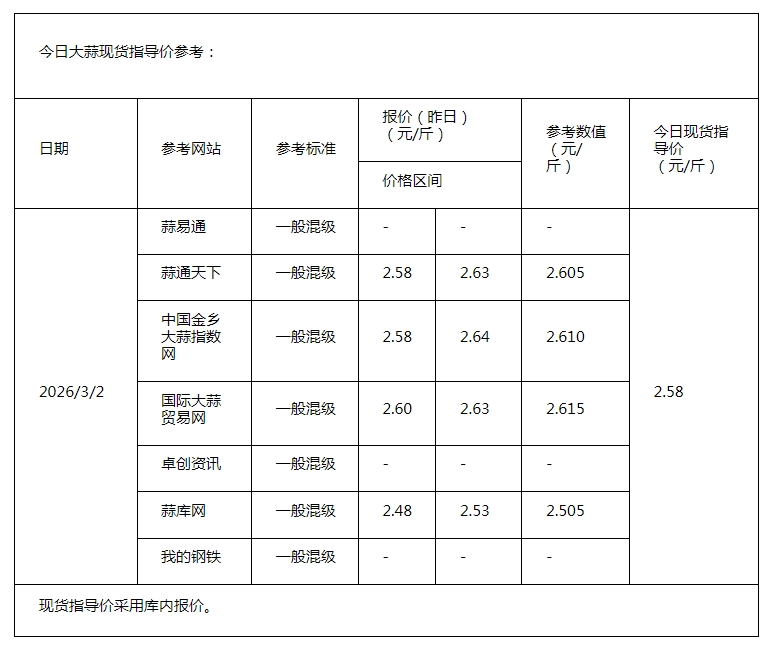 2026年3月2日大蒜、生姜、辣椒行情综述